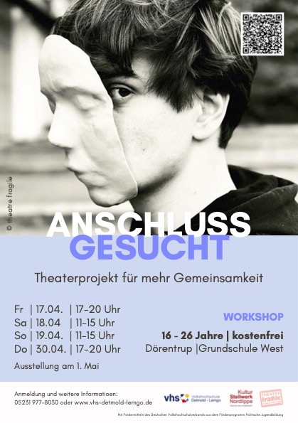 Anmeldung: Schreib uns eine Mail an mail@theatre-fragile.de oder melde dich bei der VHS Lemgo.